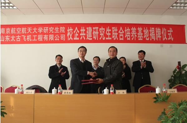 2013年12月6日,我校与山东太古飞机工程有限公司共建研究生联合培养基地签字暨挂牌仪式在济南顺利举行。出席仪式的有山东太古飞机工程有限公司总经理黄恩舫、副总经理杨光耀、培训部韩勇强经理、技术中心顾辉主任、技术工程部常城经理,南航大研究生院副院长江驹、kok体育 副院长赖际舟、电气工程系副主任陈新以及公司所有领导和部分员工,签字挂牌仪式由韩勇强主持。