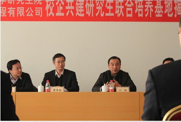山东太古公司总经理黄恩舫首先致辞,在表达了对研究生联合培养基地协议签署和挂牌的祝贺之意时,黄恩舫介绍了公司的发展情况,目前公司已成为国内主要的民用航空器大修基地之一,主要业务涵盖了机体大修、改装、部件服务加工、维修培训和工程设计等方面;作为南京航空航天大学培养出来的学生,黄恩舫再三表达了对母校和导师严仰光教授的感激之情,正是因为在公司的管理中始终秉承了我校的严谨、踏实学术作风,坚持传统教育的同时不断创新管理理念、提升管理方法,公司在全体员工的共同辛勤努力下蒸蒸日上,在短短的17年时间里取得行业内前三甲的卓越成就。