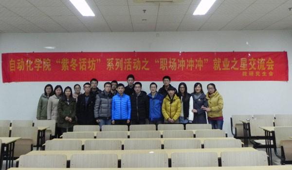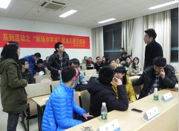 12月17日晚7点,由kok体育 研究生会主办的“紫冬话坊”系列活动之“职场冲冲冲”就业之星交流会在A18楼218教室成功举办。本次活动有幸邀请到kok体育 2011级硕士生梁�、刘军、陈阳、邢栋、宋普庚和赵妍六位就业之星与到场同学进行交流,研究生辅导员刘斐文也莅临现场出席了本次活动。