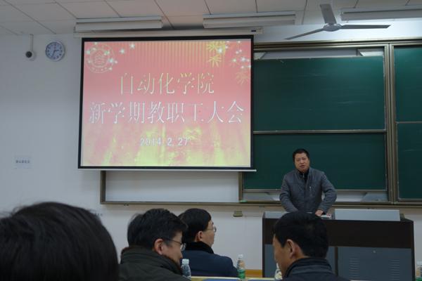 2014年2月27日下午,kok体育 新学期教职工大会在明故宫校区13-102教室召开。本次会议主要有三部分内容:一是传达校第十五届党委第十次全委(扩大)会议精神;二是党的群众路线教育实践活动阶段总结;三是学院去年下半年工作报告和今年上半年工作部署。学院全体教职工参加会议,会议由院党委书记王勤同志主持。
