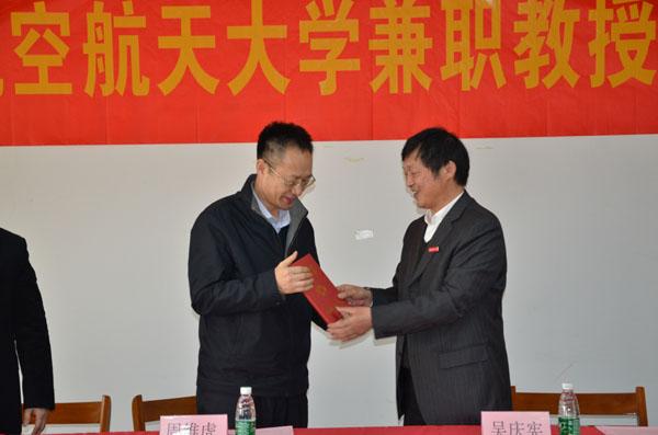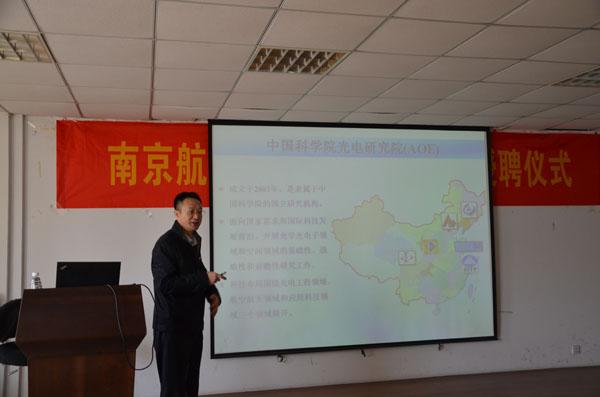 仪式上,吴庆宪副校长致欢迎辞并代表学校为周维虎教授颁发了兼职教授证书并佩戴校徽。吴副校长首先代表学校对周维虎教授的到来表示欢迎,并对周教授长期以来对我校特别是kok体育 “仪器科学与技术”学科建设发展给予的关心和帮助表示感谢。姜斌院长介绍了kok体育 建设与发展情况,对周维虎教授加入南航大家庭表示衷心的欢迎和祝贺,表示kok体育 将以此为契机,与中国科学院光电研究院更广泛地开展合作,推动“仪器科学与技术”学科建设、研究生培养和科研工作的发展。周维虎教授就自己研究领域和工作情况作了介绍,对成为南航兼职教授深表荣幸和感谢。