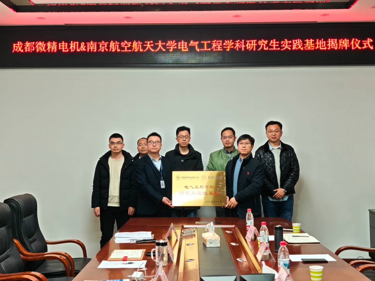 11月27日,南航团队赴成都微精电机股份公司举行交流座谈以及南京航空航天大学电气工程学科研究生实践基地揭牌仪式,成都微精电机公司党委书记、总经理石利俊及相关负责人和南航电气工程系副主任卜飞飞教授和阳辉教授共同参与。双方均表示共建研究生实践基地是双方深化合作的良好开端,并希望以此为契机,推动双方在项目申报、实验室共建和人才培养等领域开展更深入合作。
